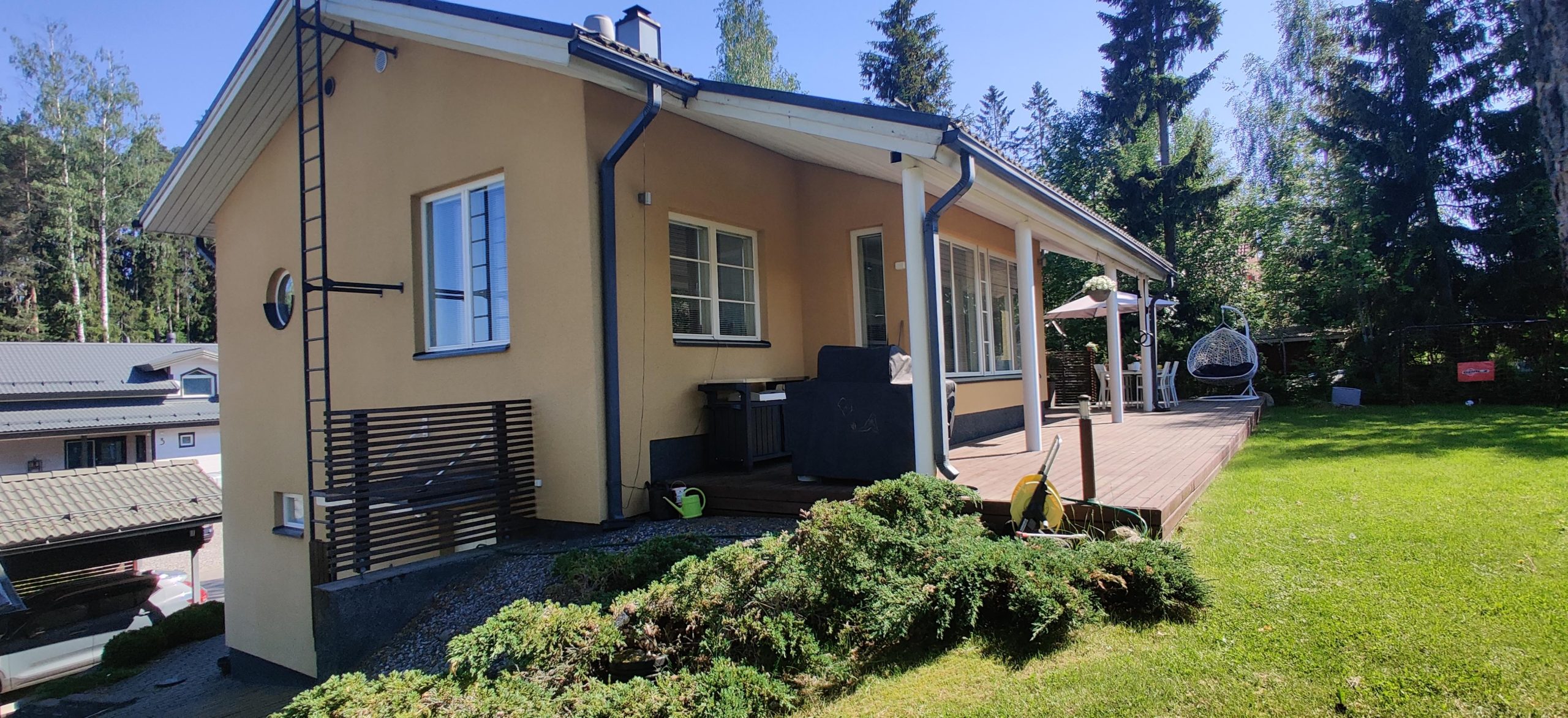 Keravalaisen omakotitalon pihan suunnittelu aloitettiin syksyllä 2021 ja rakentaminen toteutettiin osissa 2022 syksystä alkaen.