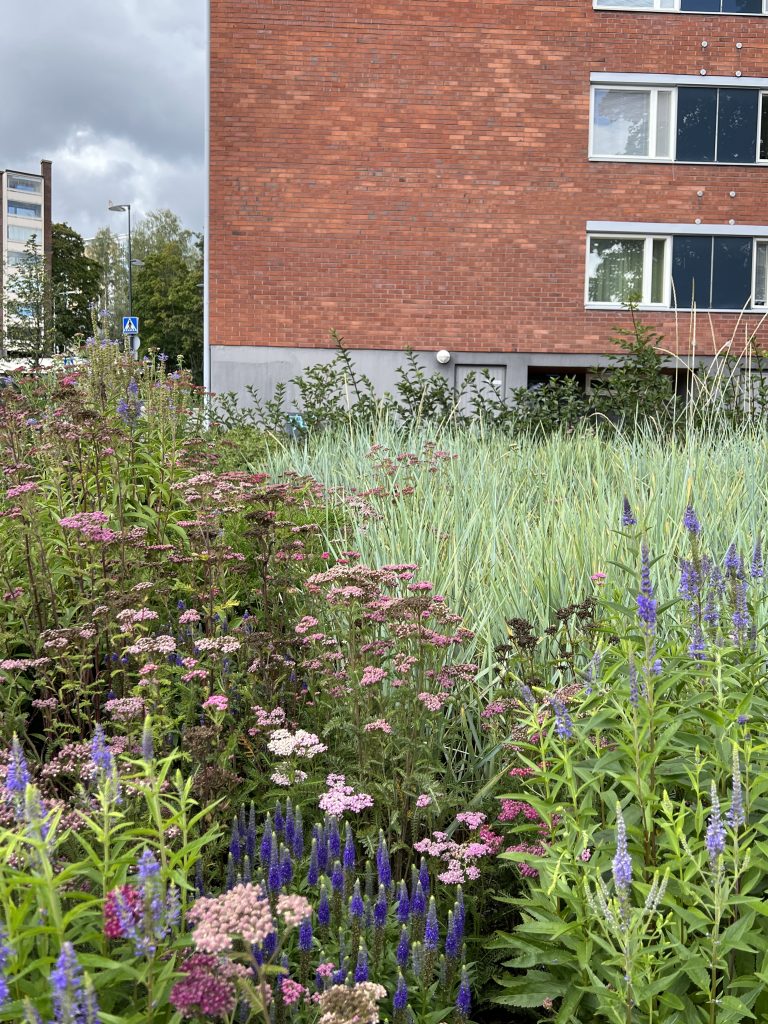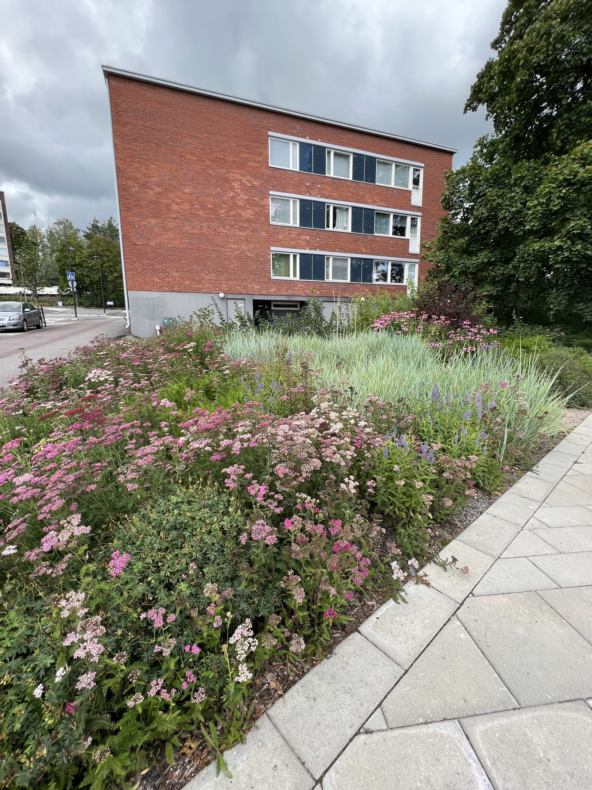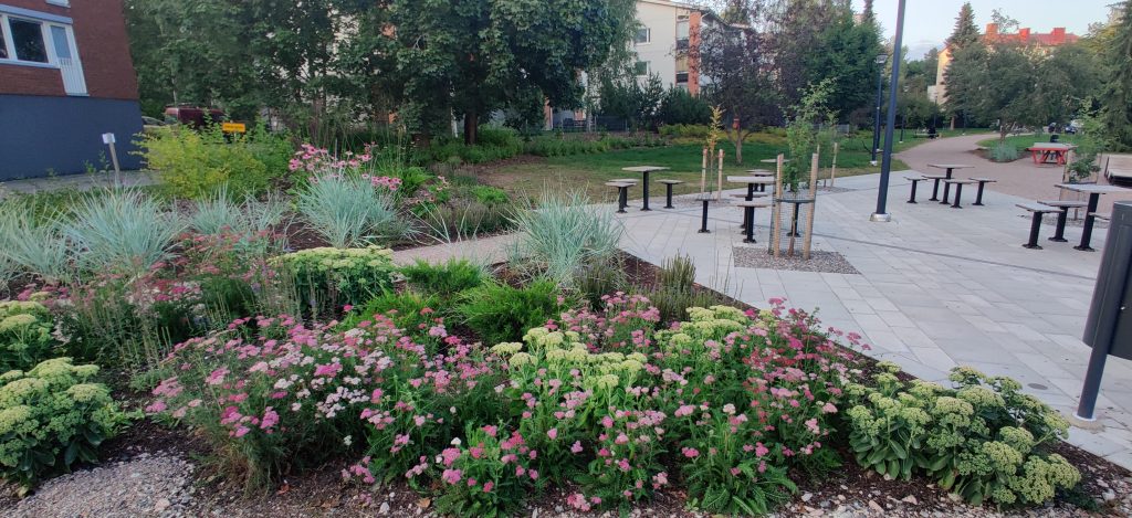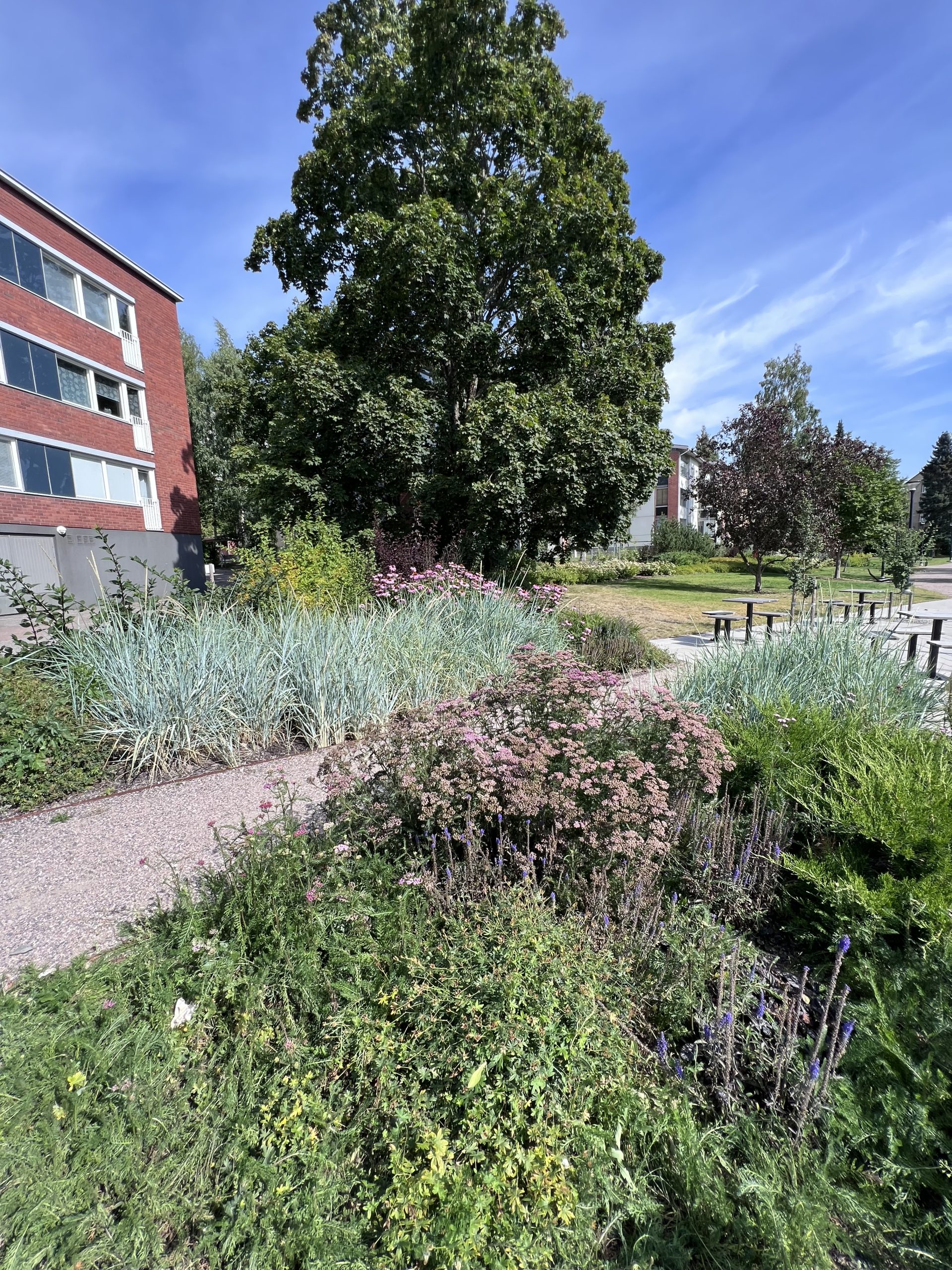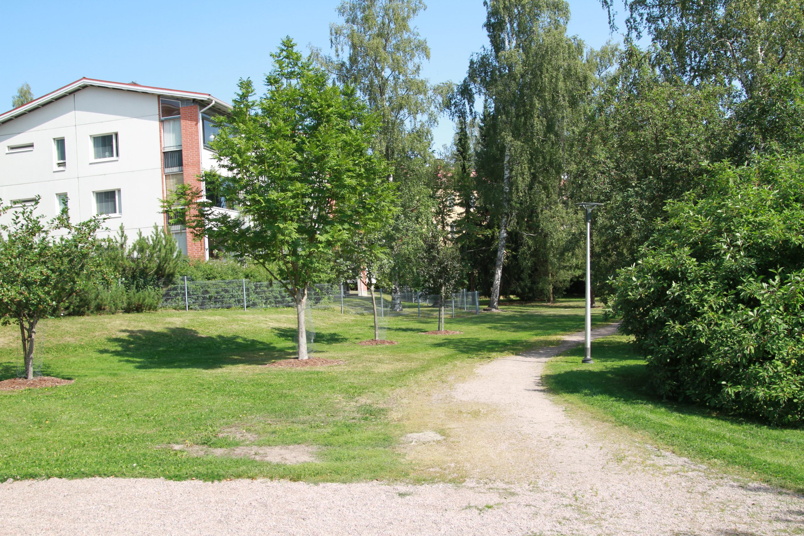 Lounaspuiston huonokuntoinen puusto poistettiin ja puistoon istutettiin uutta kasvillisuutta rajaamaan puistoa sekä tuomaan suojaa puiston vieressä sijaitseville kiinteistöille. Puistoon suunniteltiin eri korkuisia ja värisiä kasvilajeja, joiden kukinnot ja syysvärit muuttavat puiston ilmettä eri vuodenaikojen mukaan.