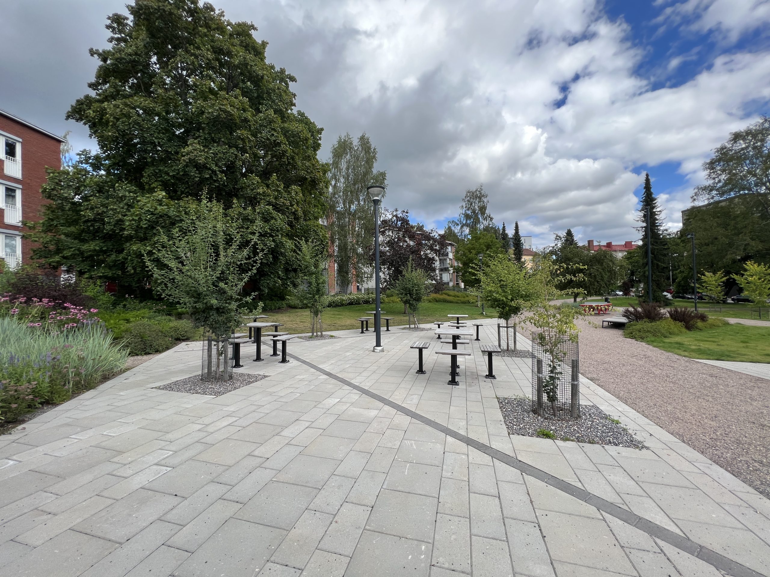 Ennen saneerausta puisto oli ikään kuin piilossa. Korkeat pensaat ja puusto rajasivat puistoa katualueesta ja piilottivat puiston taakseen. Uudistuksen myötä puisto avattiin ympäristöönsä.  Puiston kulkureitit on suunniteltu yhdistymään luontevasti ympärillä olevaan katualueeseen. Kulkureittien varrella on istuimia, jäteastioita ja penkkiryhmiä.
