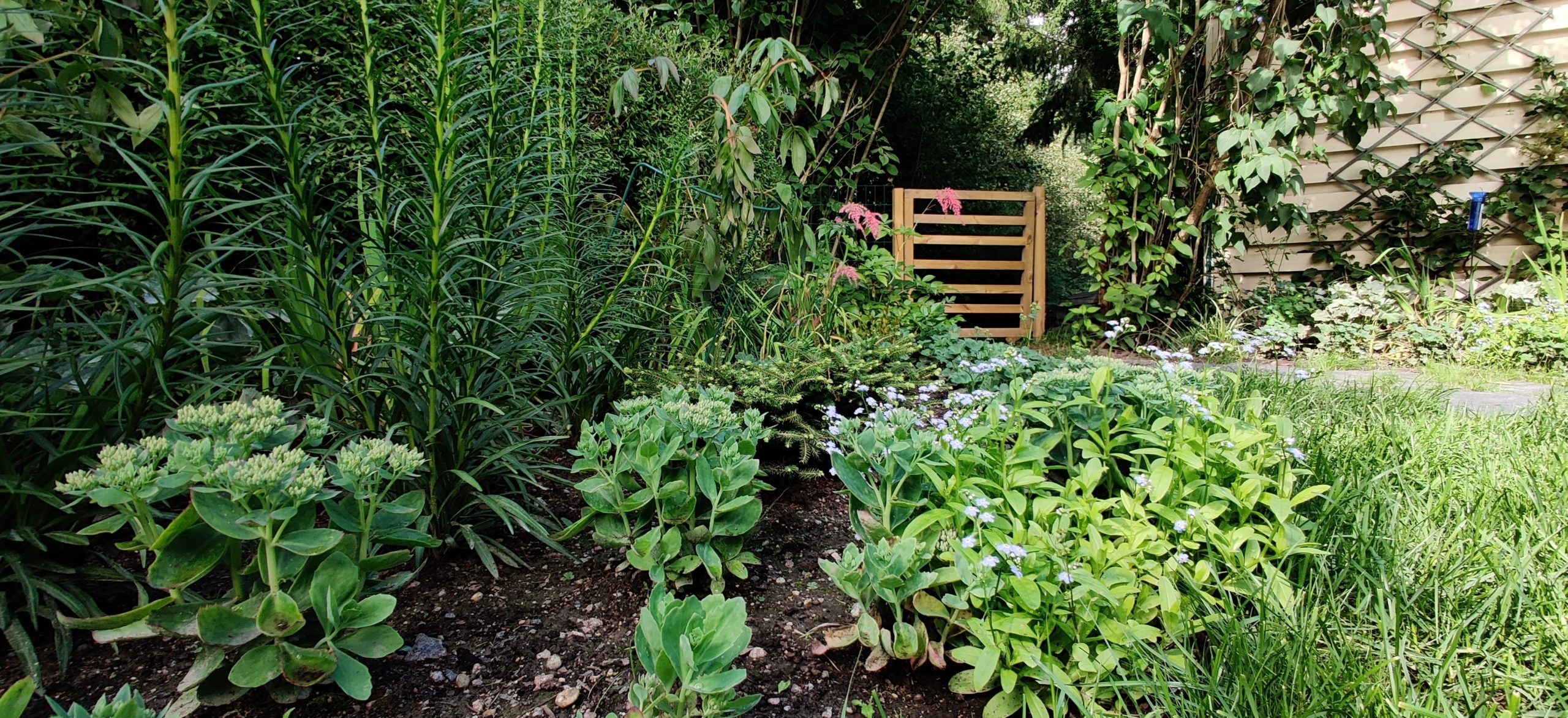 Rivitaloasunnon etu- ja takapiha suunniteltiin uusiksi keväällä 2020. Pihasta haluttiin kukkiva ja vehreä keidas monipuolisilla istutuksilla. Piha toteutettiin Pihauksen ja yhteistyökumppaneiden toimesta.